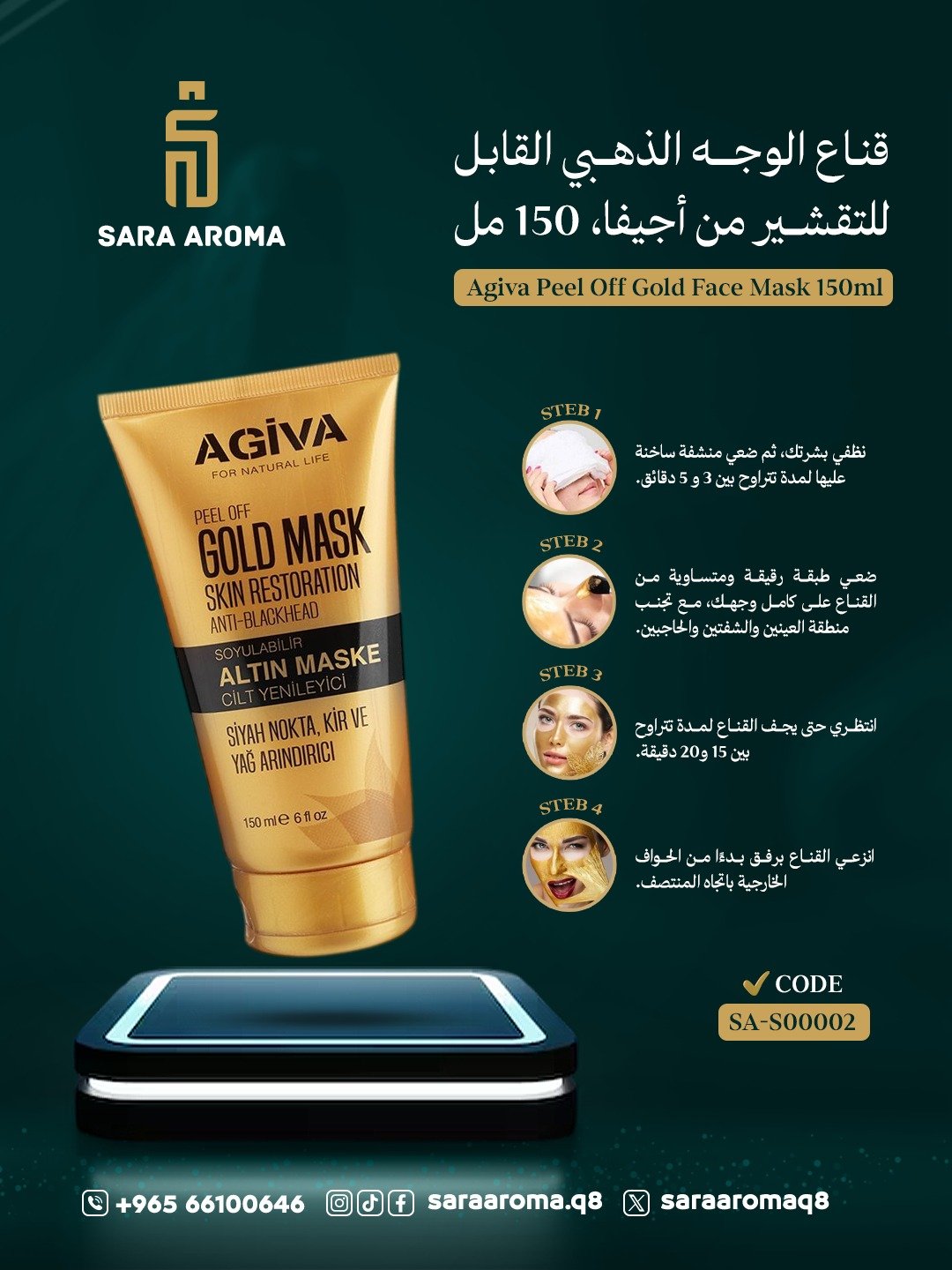 احصلي على بشرة نظيفة، منتعشة، ومشرقة مع قناع الوجه الذهبي المقشر من أجيڤا – إضافة مثالية لروتين العناية ببشرتك.